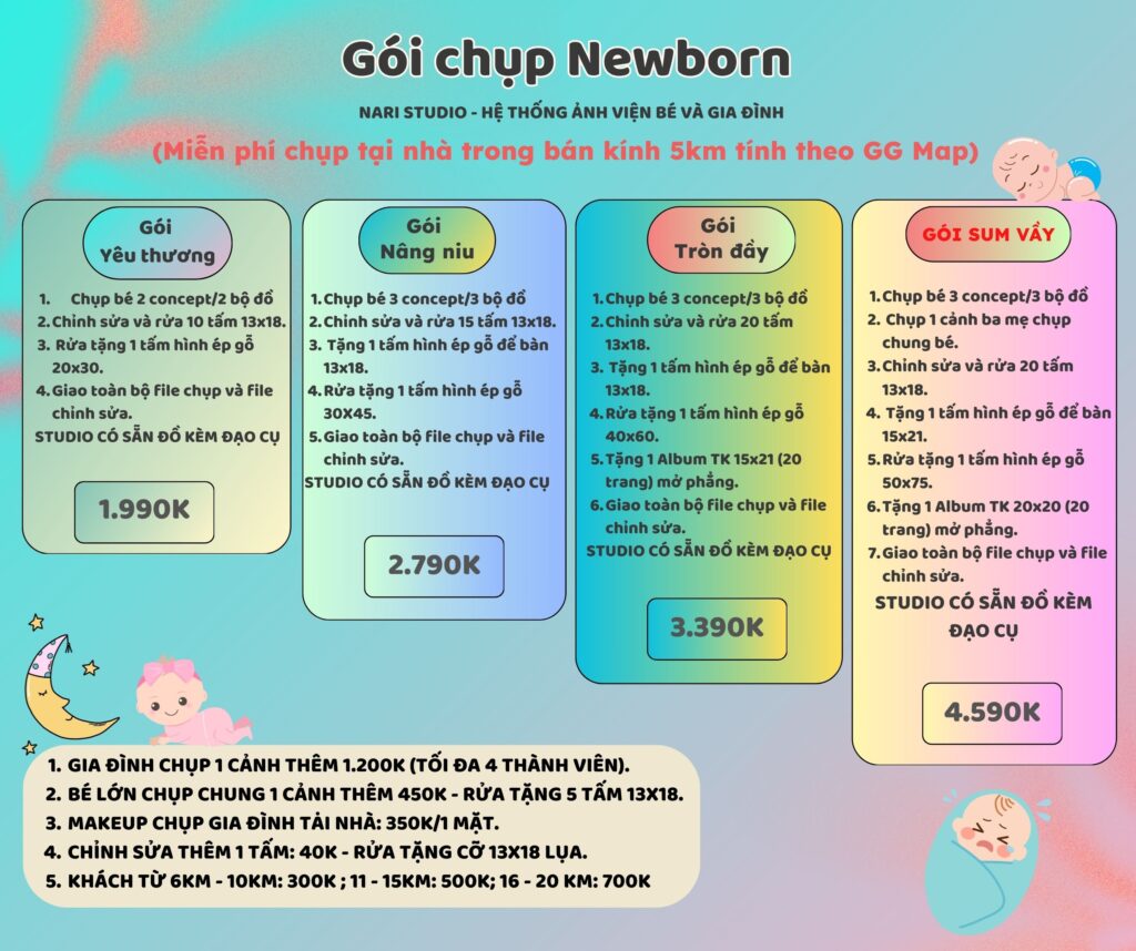Nari Baby Studio xin gửi đến quy khách hàng bảng giá chụp hình sơ sinh – newborn.